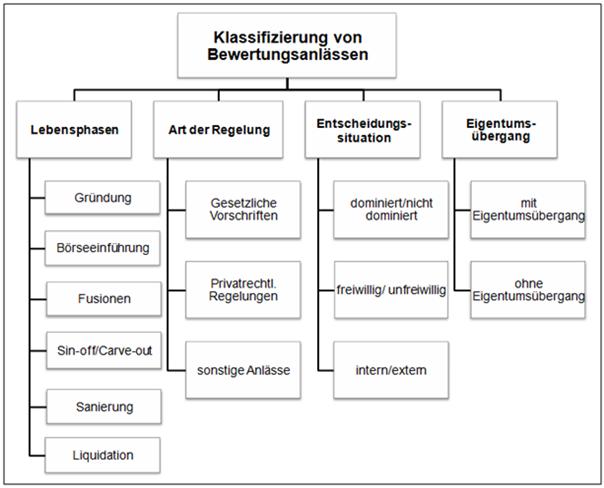 Bewertungsanlässe können sehr vielfältig sein. Eine eindeutige Klassifizierung existiert nicht. Nachfolgend wäre eine umfangreiche mögliche Klassifizierung ersichtlich: